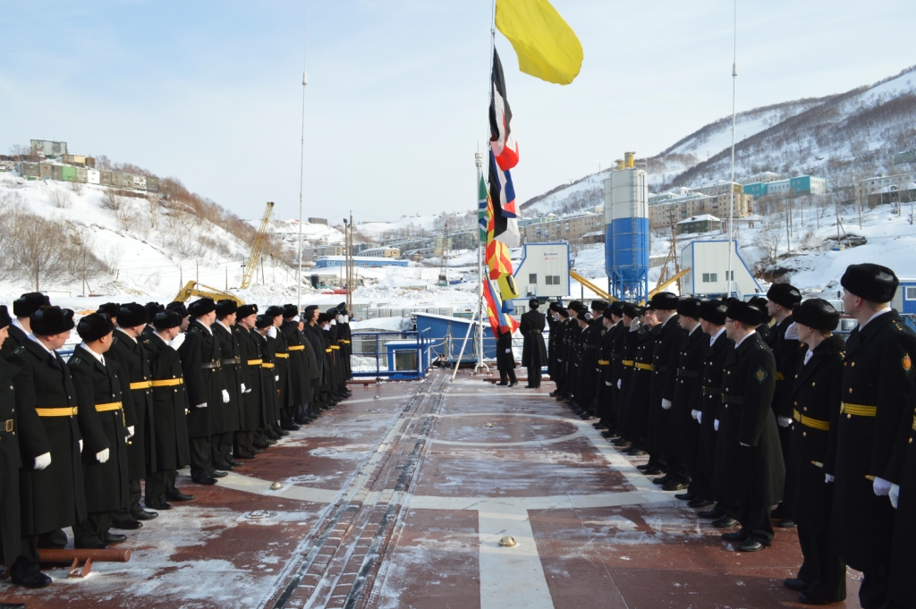 Торжественное собрание экипажа пограничного сторожевого корабля первого ранга «Воровский», посвященное 24-ой годовщине подъема военно-морского флага, состоялось в прошедшее воскресенье, 5 апреля.