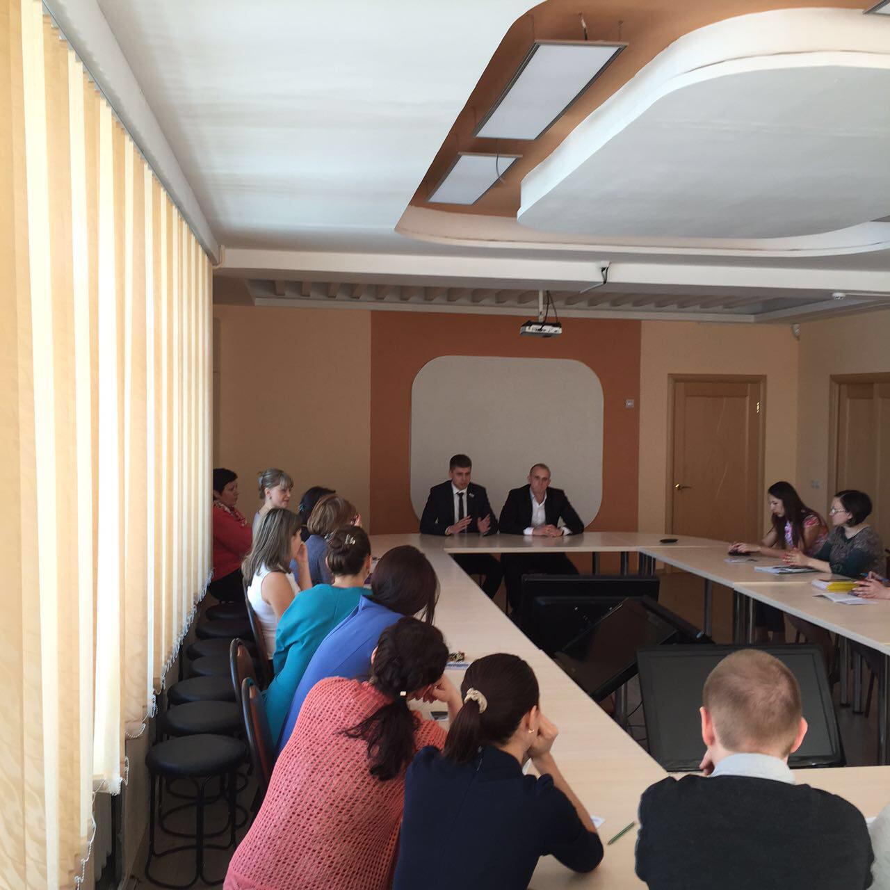 Депутат ГорДумы Петропавловска по четвертому избирательному округу Дмитрий Тимофеев и руководитель молодежной общественной приемной по вопросам ЖКХ Денис Прудкий на прошлой неделе провели встречу с коллективом Краевого государственного общеобразовательного автономного учреждения «Центр образования «Эврика».